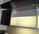Bucatarie Blackie - Mobilier bucatarie executat din Mdf lucios maro inchis spre negru, foarte elegant. Mobilier complex si complet de bucatarie in care sunt incorporate toate aparatele de bucatarie, inclusiv frigiderul. Un mobilier ce promite sa impresioneze si sa te faca sa te simti cat mai bine in casa ta. Cuptorul si spalatorul de vase sunt incorporate in mobilier, insa nu vin odta cu mobilierul. Se achizitioneaza separat.